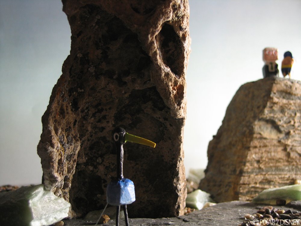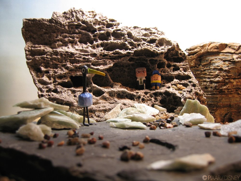 Lou Romano also made a “rough desktop diorama” that depicted a scene from the Up screenplay. This was used as a tool for experimenting with color, effects, and compositions. Romano (ibid.) explains: